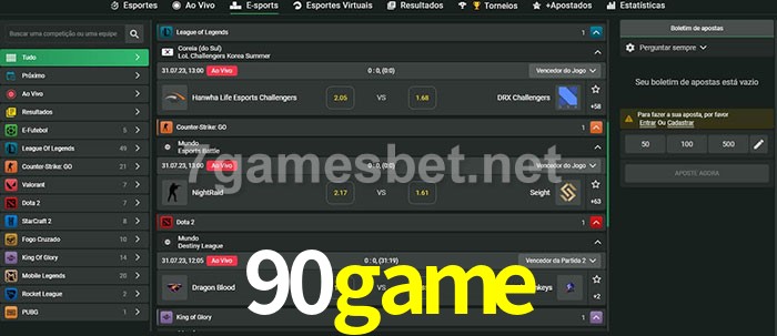 O 90game oferece uma grande seleção de opções de apostas em e-sports com probabilidades competitivas